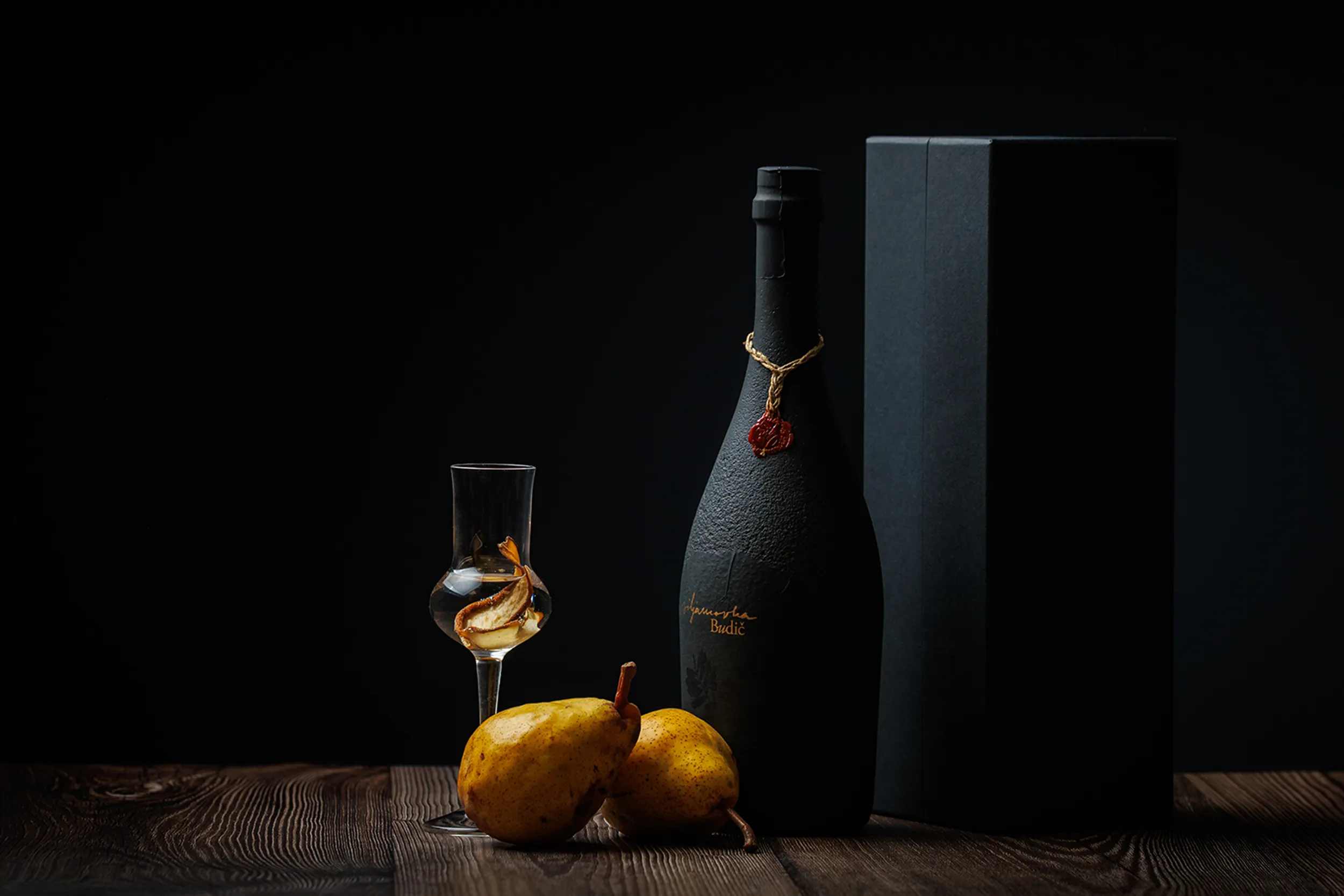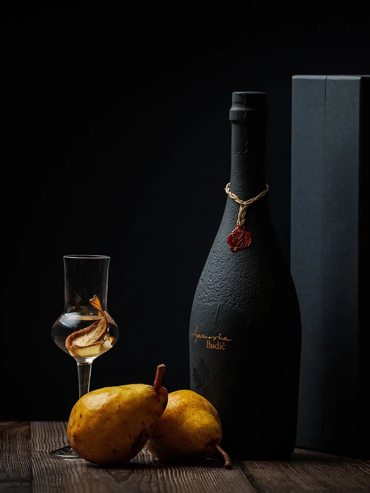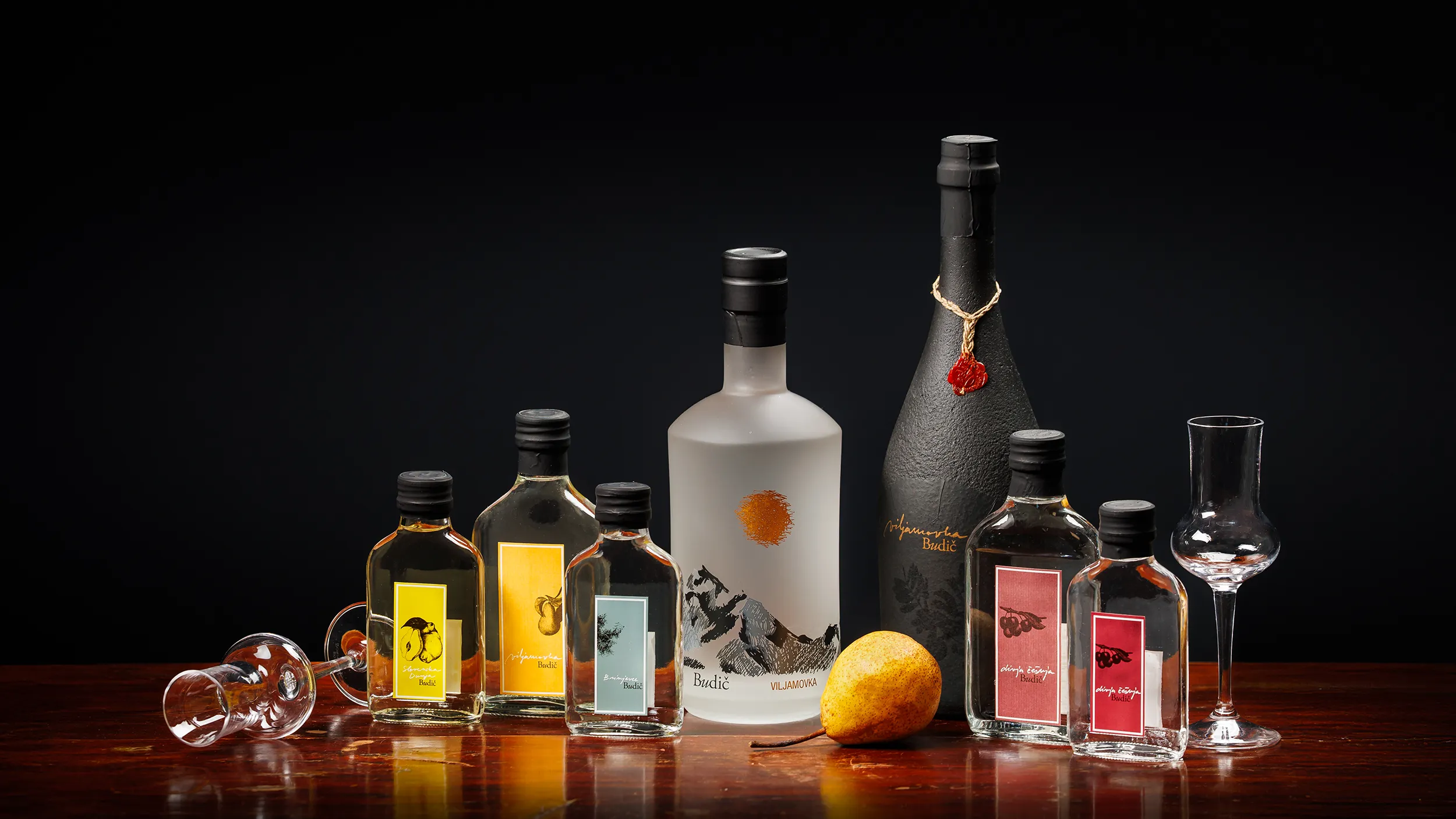 Ročno izdelana steklenica viljamovke je naša najbolj prestižna izvedba viljamovke z elegantnim pečatom.