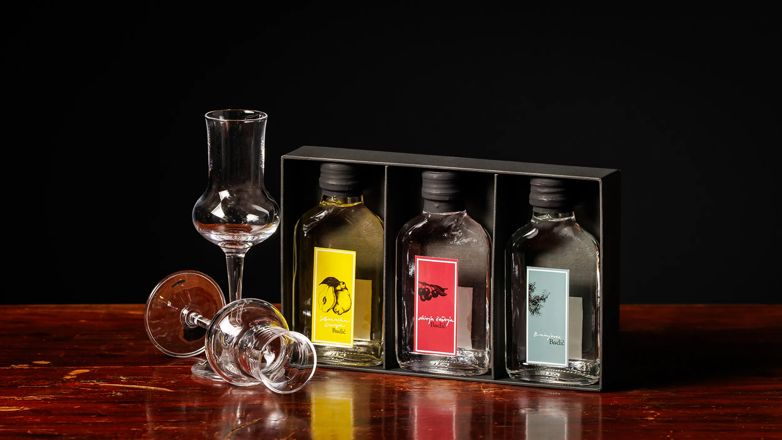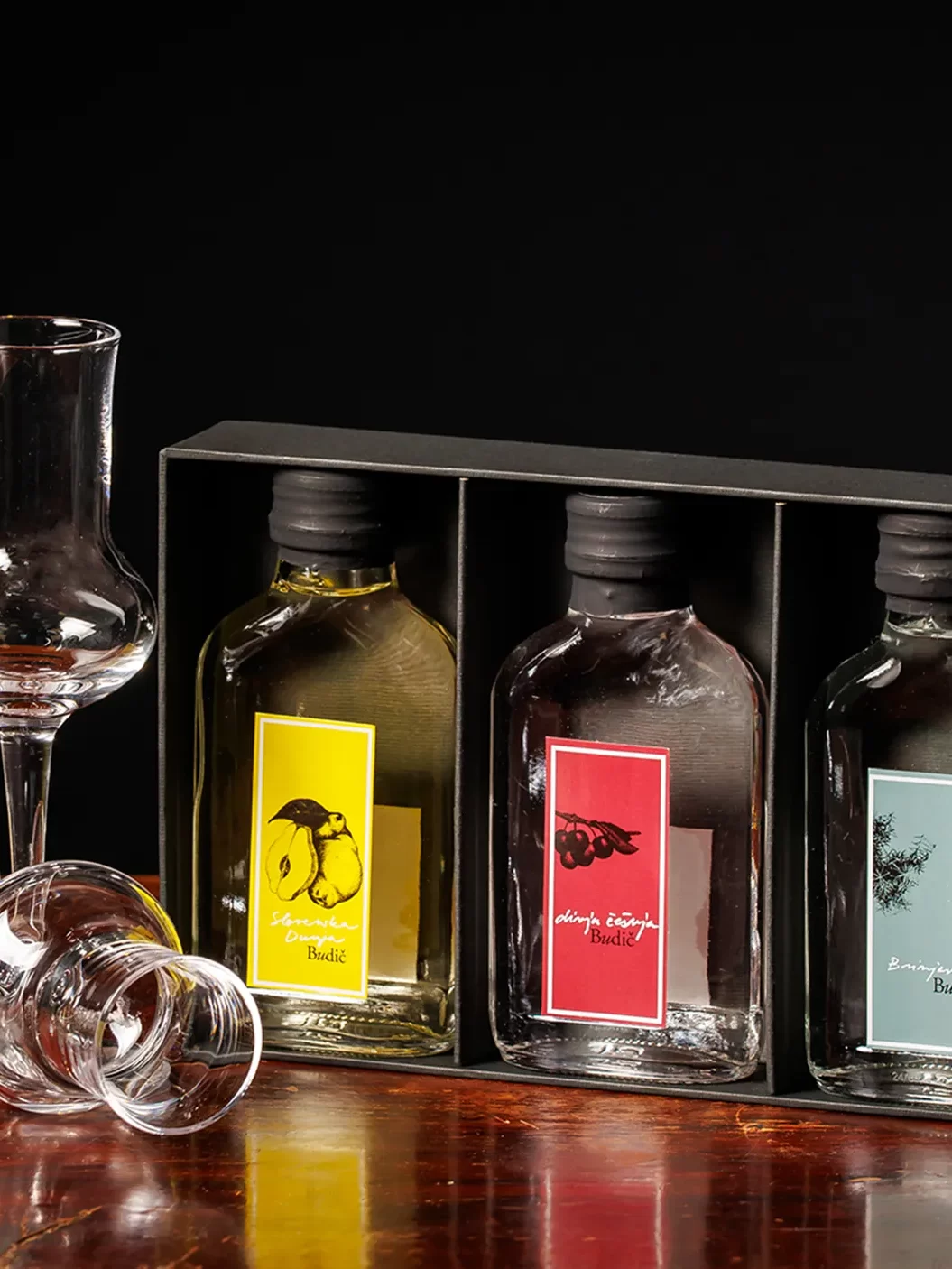 Budič prinaša možnost izbora posamične steklenice v darilni embalaži in v “trisu” ali “duo” ter v za to prilagojeni darilni embalaži. Standardne oblike embalaže je mogoče opremiti z dodatki – logotipi po želji naročnikov!